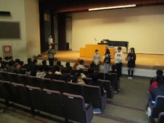 3月6日(金)今日から6年生卒業式練習がスタートしました。今日は実行委員の皆さんが決意表明した後、教務主任および6年生の先生とともに、おおまかな動きを確認しました。小学校最後の卒業式。素敵な卒業式になるといいですね。練習は来週も行っていきます。6年生のみなさん頑張ってください。