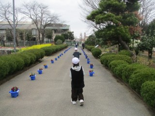コホミンにつながる校門への通路には、1年生の皆さんは卒業式に向けてパンジーの花をきれいに並べてくれました。ありがとうございました。