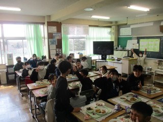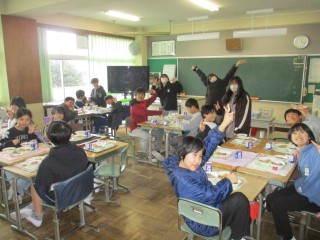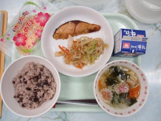 3月16日(月)今日は明日が6年生卒業ということもあり、給食は卒業お祝いメニュー(お赤飯、お祝いなると入りすまし汁、お魚、お祝いクレープなど)がせました。また、今日の6年生は小学校最後の給食(在校生も3学期最後)となりました。美味しい給食、一年間ありがとうございました。