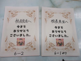 3月16日(月)卒業式練習最終日。練習後あたたかいメッセージを6年生からいただきました。