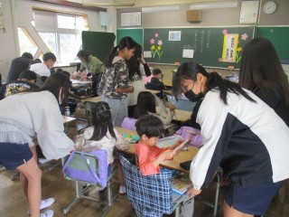 教室に入室後は、担任の先生と6年生の皆さんにランドセルのしまい方や道具の出し方など朝の準備のやり方を教えてもらっていました。6年生の皆さんありがとうございました。