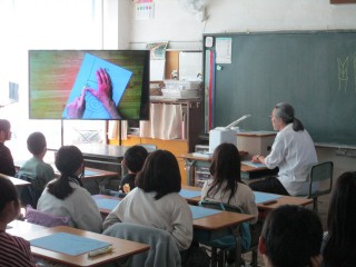 彫刻刀の持ち方、使い方を丁寧に教えていただきました。