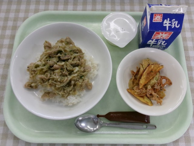 今日は、家庭科の授業で6年生が考えた献立です。12月に全校投票を行い、1位に選ばれました。