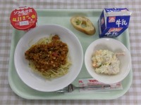 献立スパゲッティミートソース・ガーリックトースト・ポテトサラダ・ヨーグルトガーリ...