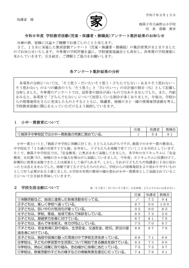 令和6年度学校教育活動(児童・保護者。教職員)