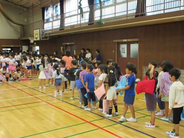 今回は火災の想定で避難訓練を行いました。防火扉をくぐるときに足元を気を付けること、防火シャッターが下りてきたらくぐらないで、非常扉を使うなど、全校で確認しました。