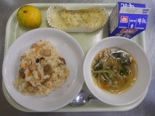 【きのこの洋風混ぜごはん・タラのタルタルソース焼き・ポテトスープ・みかん】