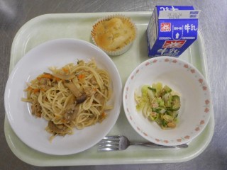 10月17日の給食 公開日 2025/10/23 更新日 2025/10/23 R7年度の給食 10月17日の給食【山の幸スパゲティ・ツナと大豆のサラダ・我孫子産米粉のさつまいもケーキ】 みなさん、給食のごはんはいつも我孫子市でとれたお米を使っていることは知っていますか? 今日は、我孫子市でとれたお米を粉にした米粉でケーキを焼きました。米粉のケーキはモチモチとした食感が特徴です。今日の米粉は、JAちば東葛様から無償でいただいたものです。感謝していただきましょう!