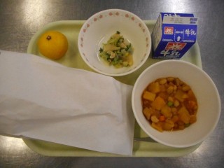 10月24日の給食 公開日 2025/10/24 更新日 2025/10/24 R7年度の給食 10月24日の給食【きなこ揚げパン・ポークビーンズ・かぶとベーコンのサラダ・みかん】 今日のサラダは、かぶで作りました。かぶは100年以上も前に日本に伝えられた歴史の古い野菜です。日本各地には約80種類以上のかぶがあるそうです。かぶといえば、1年生で習う「おおきなかぶ」のお話が有名ですが、関東で手に入るかぶは直径がだいたい5~6cm程度の白いかぶが多いです。