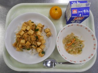 9月3日の給食 公開日 2025/10/31 更新日 2025/10/31 給食室から 9月3日の給食【牛乳・麻婆丼・春雨サラダ・冷凍みかん】 長かった夏休みも終わり、給食も今日から始まります。食欲が落ちたり、体の調子が悪い人はいませんか? こういう時こそ、しっかり栄養をとって体調を整えましょう。 1日を元気にスタートさせるためには朝ごはんが大切です。夏休みに生活リズムが乱れてしまった人は、早寝・早起き・朝ごはんで生活リズムを整えましょう。