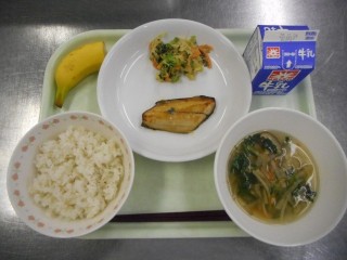 11月27日の給食 公開日 2025/11/27 更新日 2025/11/27 給食室から 11月27日の給食【牛乳・ごはん・サワラのゆずみそ焼き・小松菜のごま和え・沢煮碗・バナナ】 今日の汁物は沢煮碗です。沢煮碗の「沢」という漢字には「たくさんの」という意味があり、その名前の通り、豚肉やだいこん、にんじん、ごぼう、たけのこなどたくさんの食材が入った具沢山の汁物です。かつお節や昆布から丁寧にとった出汁に、食材のうま味が染み出していておいしい仕上がりになりました。