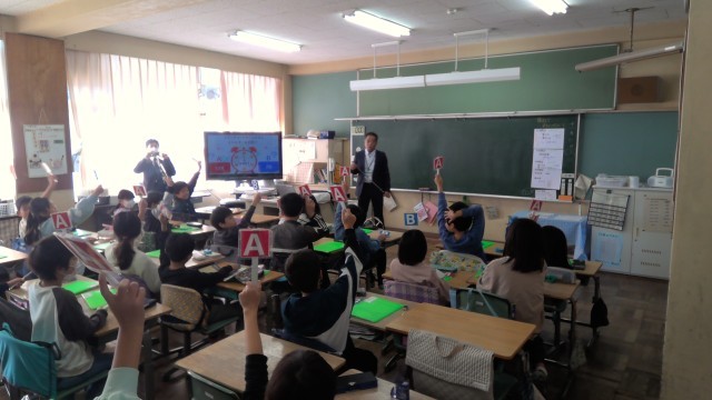 11/7 防災教室 公開日 2025/11/07 更新日 2025/11/07 R7年度 学校アルバム 2学期 4年生が我孫子中学校区の小中一貫カリキュラムの一環で防災教室を行いました。西部防災センターの方に来ていただき、自助・共助・公助を考えました。