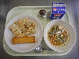 12月18日の給食 公開日 2025/12/18 更新日 2025/12/18 給食室から 12月18日の給食【牛乳・焼肉チャーハン・カマスのチーズ春巻き・五目中華スープ・ひとくちぶどうゼリー】 カマスは口が大きく、細長い形をした白身の魚です。秋から冬にかけて脂がのり、おいしくなります。味や食感が「サワラ」に似ていることから「銀サワラ」と呼ばれることもあります。今日はそんなカマスを、チーズと一緒に春巻きの皮に包んで、パリパリに揚げました。