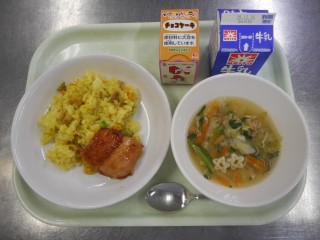 【牛乳・カレーピラフ・ローストチキン・星のパスタ入りスープ・クリスマスデザート】