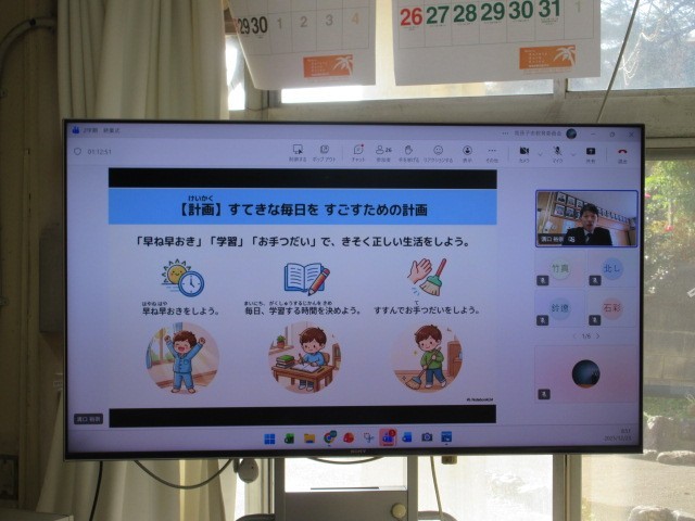 本日2学期の終業式でした。感染症拡大防止のため、本日はオンラインで行いました。テレビに映し出される映像を真剣に見て、話をしっかり聞く姿に、2学期の成長がうかがえました。3学期も高小っ子の頑張りを応援してください。