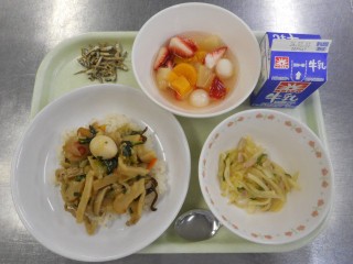 2月24日の給食 公開日 2026/02/24 更新日 2026/02/24 給食室から 2月24日の給食【牛乳・中華丼・じゃがいものサラダ・にぼし・サイダーフルーツポンチ】 中華丼は、中華料理だと思っている人も多いかと思いますが、実は日本生まれの料理です。ある日、急いでいる客が、早く食べられるようにごはんの上に「八宝菜」をかけるように注文したことから、中華丼が生まれたといわれています。 ちなみに、ごはんにかに玉をのせた「天津飯」も日本生まれの料理です。