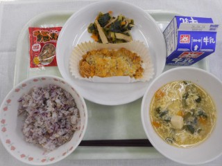 4月17日の給食 公開日 2026/04/17 更新日 2026/04/21 給食室から(R8) 4月17日の給食【牛乳・ゆかりじゃこごはん・白身魚のパリパリ焼き・小松菜のお浸し・ニラ玉汁・黒糖ビーンズ】 ごはんに混ざっている「ゆかり」とは、赤しそのことです。しそは日本を代表するハーブともいいます。ミャンマー、中国あたりで生まれ、旬は夏ごろです。日本に伝わったのは、平安時代の少し前で、当時は薬として使われていました。