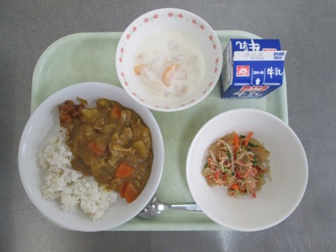 牛乳 カレーライス 福神漬け こんにゃくサラダ ヨーグルト和え