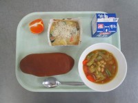 牛乳 黒糖パン ポテトグラタン いんげん豆のカレースープ みはや