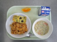 牛乳 チキンライス おからのキッシュ 米粉のコーンチャウダー オレンジ