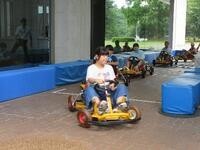「本田コレクションホール」に着くと、最初に電動カート乗車体験をしました。ここでは、タイヤの硬さが違う2種類のカートに全員が乗車しました。1回目の体験では、コースの最初のカーブで操作を苦戦する子もいましたが、2回目はとても運転が上手になり、子どもたちの順応性の高さに感心させられました。体験後は、タイヤの硬さの違いが実際の車にどう生かされているかの説明をしていただき、乗用車とスポーツ車の違いに多いに納得したようでした。次に、ホンダコレクションホールでグループごとに見学しました。ここでは、クイズラリー形式で、クイズを解きながら館内の展示物を楽しく鑑賞することができました。