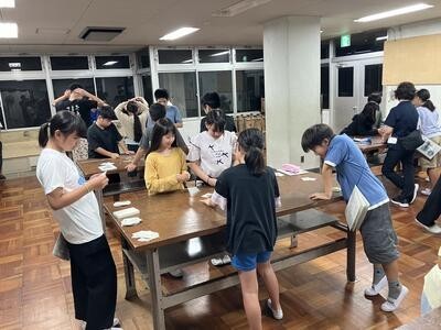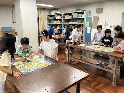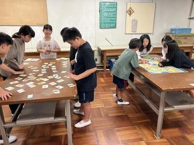 夕食、お風呂の後は、大房すごろくと生き物カルタで盛り上がりました