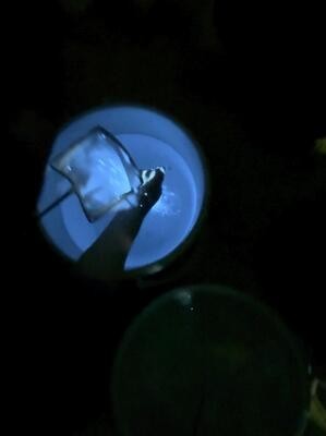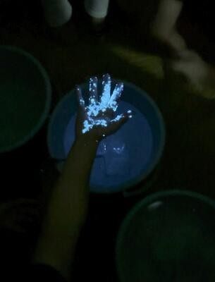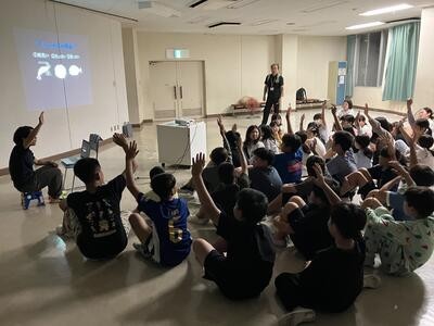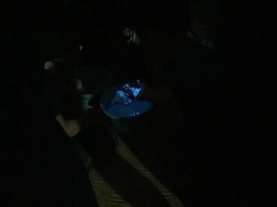 ウミホタルの観察では、今回子どもたちのために採ってきていただいたウミホタルを実際に観察しました。また、触る体験もさせていただきました。海のダイヤモンドといわれるウミホタルは、とても幻想的できれいでした。