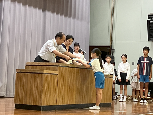 今日は、10月の全校朝礼がありました。校長先生からは、「相手の立場に立って考えることの大切さ」について話がありました。また、先日行われた市内科学作品展等の表彰を行いました。