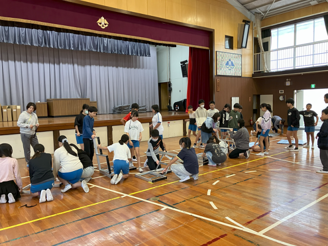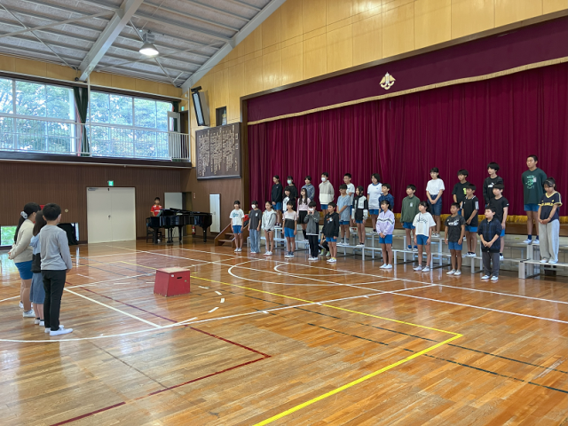 今日は、6年生が、メロディーフェスティバルの体育館練習に向けてひな壇を設置してくれました。16日(木)から、体育館練習が始まります。