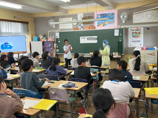 今日は、6年生の総合学習で「プロフェッショナルに聴く会」を実施しました。美容師、看護師、芸術家の3名の方々に来校いただき、それぞれの職業についてや働くということについてなど話をしていただきました。子どもたちからもたくさんの質問があり、とても貴重な時間となりました。湖北台中の校長先生も見に来られていて、6年生の真剣な様子に感心して帰られました。お忙しい中ご協力いただいた3名の方々、本当にありがとうございました。