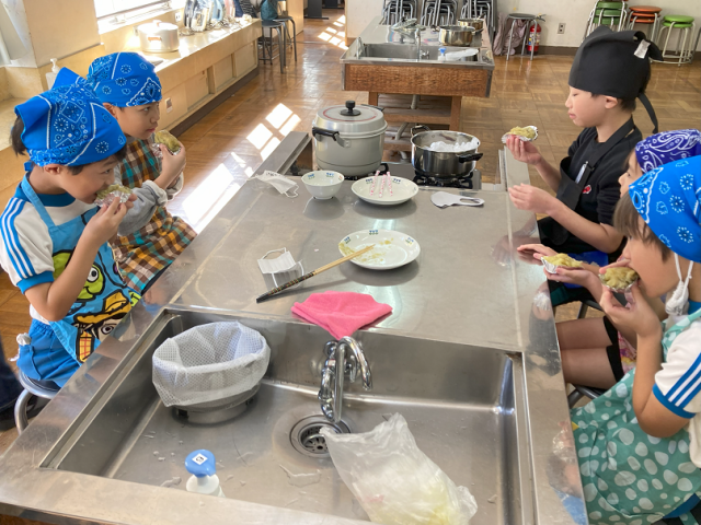 今日は、1年生となかよし学級が、育てたさつまいもを使ってスイートポテト作りを行いました。ボランティアのみなさんにもご協力をいただき、安全に楽しく調理をして美味しく食べることができました。職員の分も作ってくれたのでありがたくいただきましたが、とても美味しかったです!!