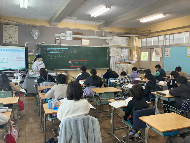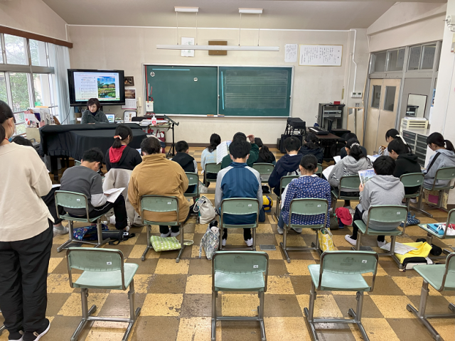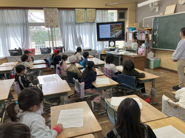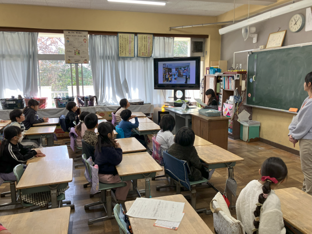 今日は、2年生が生活科の学習で「町はっけん発表会」を行いました。10月に行った町探検のまとめを、一人ずつ頑張って初めてのスライドにまとめて発表しました。みんな詳しくまとめられていて、堂々と発表することができました。