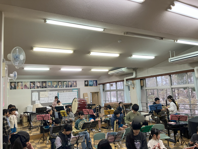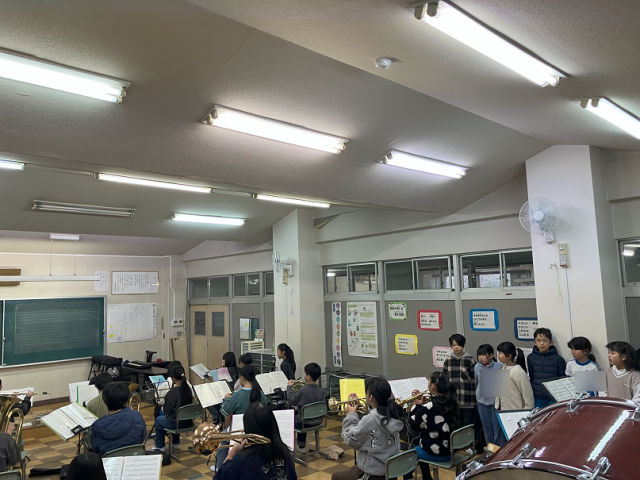 今日は、3年生の希望児童が吹奏楽部の見学を行いました。4~6年生の練習の様子を真剣に見つめていました。