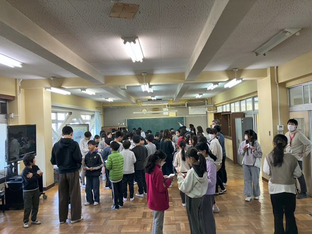 2月19日(木)5年生東西交流会 公開日 2026/02/19 更新日 2026/02/19 学校生活のようす 今日は、5年生が湖北台西小の5年生と交流会を行いました。名刺交換ゲームやグループ対抗のクイズゲームなどで楽しく盛り上がりました。西小の5年生のみなさん、ありがとうございました。 また、湖北台中の2年生も来校しました。地域貢献活動として、今回は教室や廊下の窓掃除をしてくれました。台中生のみなさんもありがとうございました。 +7