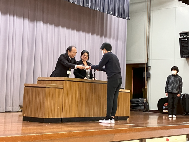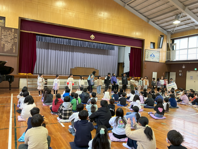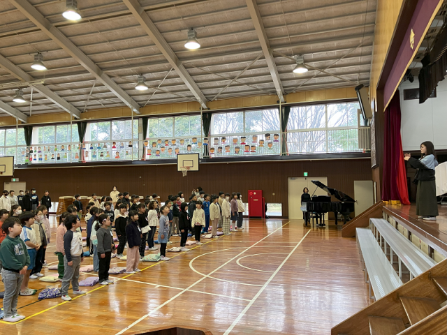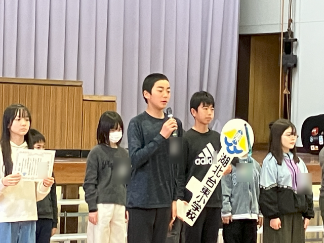 今日は、3月の全校朝礼がありました。1年生が元気に生活目標の発表をしたり、図書委員会が今年度たくさん本を借りた人を表彰したりしました。
