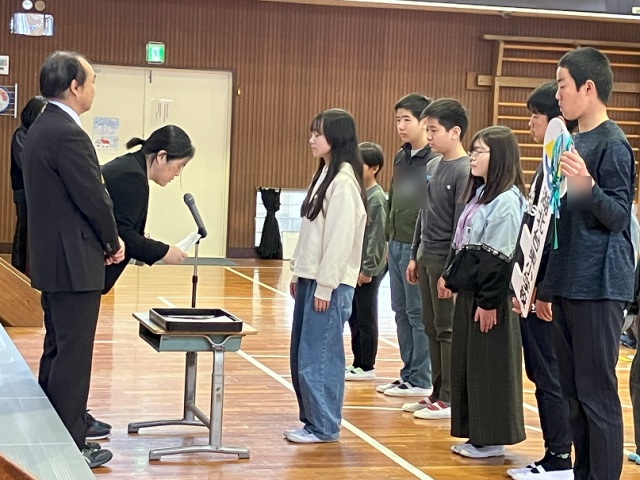 全校朝礼に引き続き、児童会役員の引き継ぎ式を行いました。今年度の児童会役員のみなさん、東小のためにありがとうございました。お疲れさまでした!