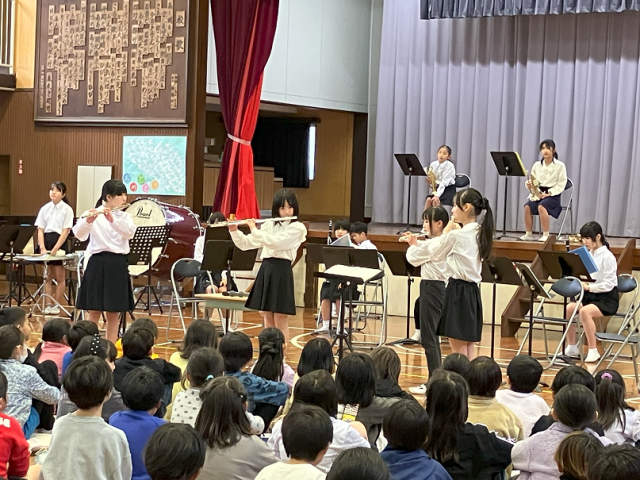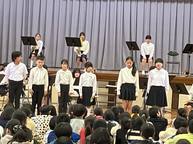 今日は、吹奏楽部のスプリングコンサートが行われました。楽器の紹介などもあり、低学年の子どもたちも楽しく聴くことができました。今年の4~6年生のメンバーで演奏する最後の機会となりましたが、練習の成果を発揮して、素敵な演奏を披露することができました。吹奏楽部のみなさん、ありがとうございました!6年生の吹奏楽部員のみなさん、お疲れさまでした!!