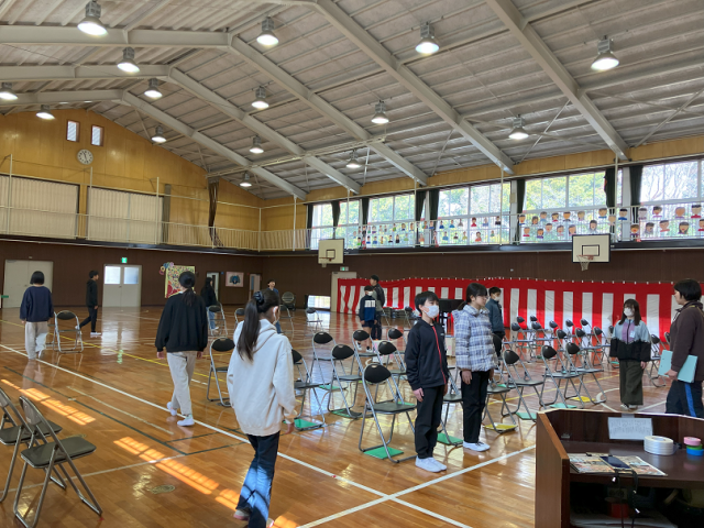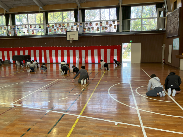 3月9日(月)5年生体育館水拭き・いす出し 公開日 2026/03/09 更新日 2026/03/09 学校生活のようす 今日は、5年生が、卒業式に向けて体育館の水拭きといす出しを行いました。6年生のために進んで作業に取り組む姿は、とても頼もしいです。歌と呼びかけの練習も頑張っています。 午後には、6年生と1年生でレクを行っていました。これは、6年生の卒業に向けた取り組みの一つで、他の学年ともレクを企画して、思い出をたくさん作っています。卒業式まで残り5日です! +7