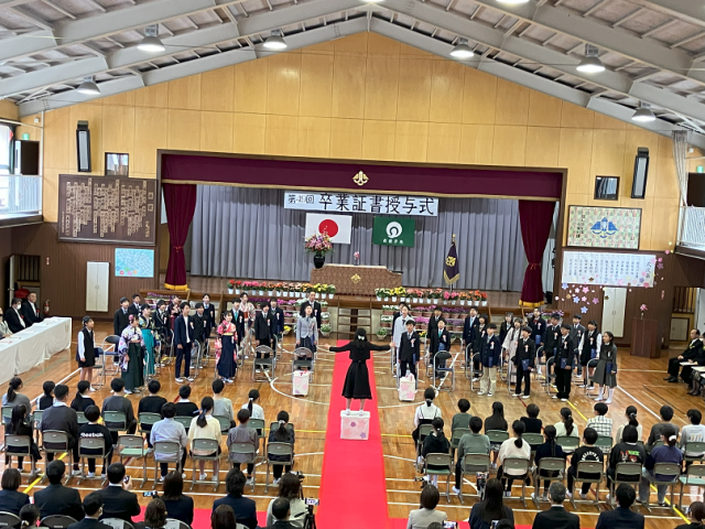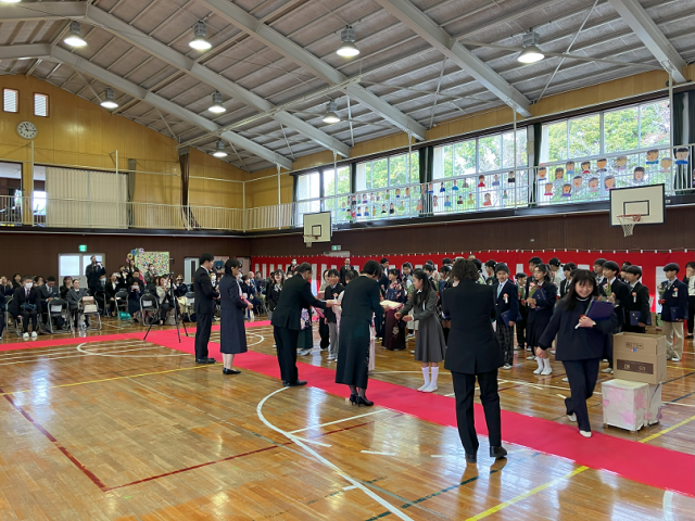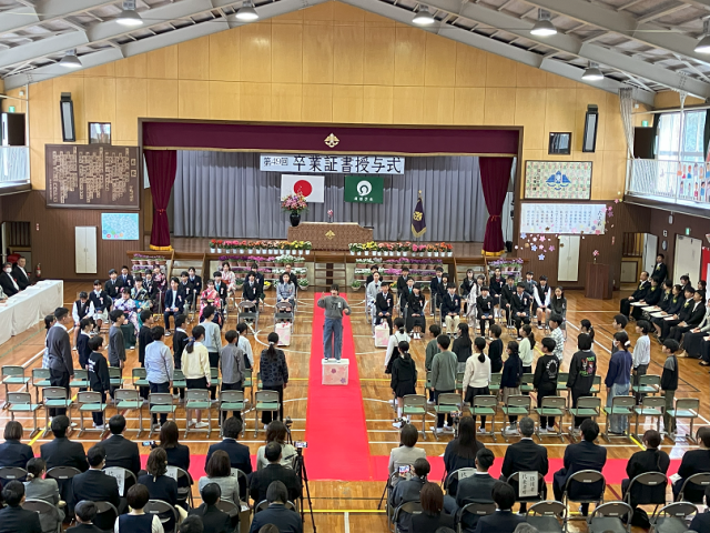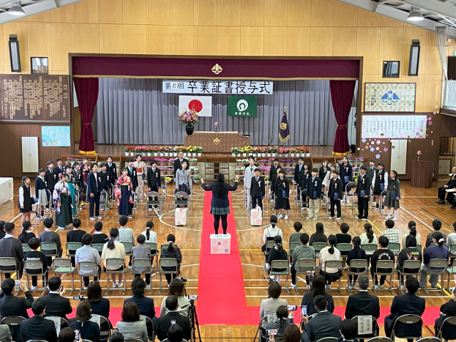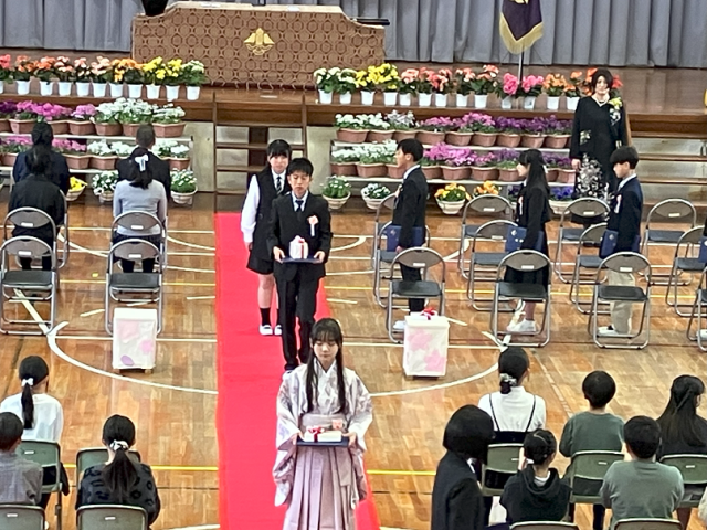 今日は、令和7年度第49回卒業証書授与式がありました。卒業生は、晴れ晴れとしたとても良い顔で、堂々と卒業証書を受け取ったり、呼びかけをしたりしていました。歌もとても感動的でした。6年間の成長や感謝、これからの決意が伝わる素晴らしい卒業式になりました!6年生のみなさん、今までありがとうございました。中学校に行っても、夢や目標に向かって頑張ってください!