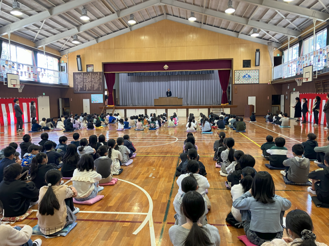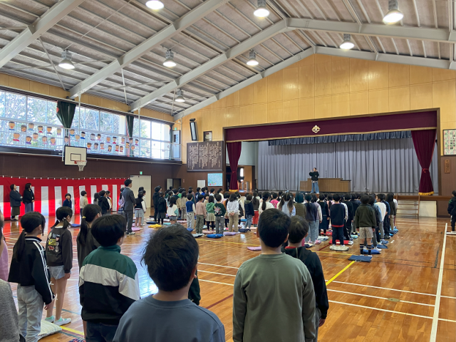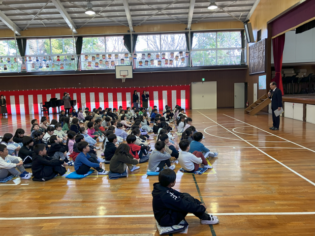 今日は、令和7年度の修了式と辞校式が行われました。修了式では、各学年の代表児童に修了証が渡されました。校長先生からは、「今年1年間よく頑張りました。4月からも失敗を恐れずに色々なことにチャレンジしてさらに成長してほしいです。」といった内容のお話がありました。辞校式では、異動される先生方へ感謝の気持ちとさようならを伝えることができました。