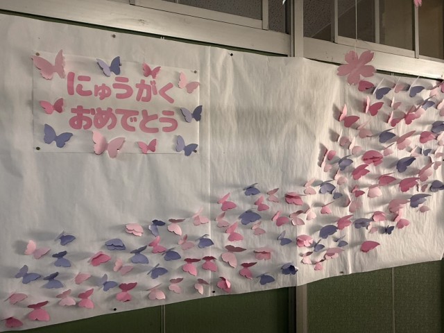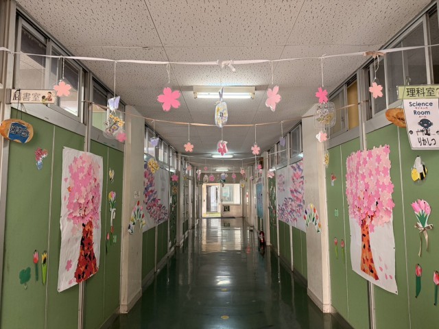 ’ピカピカの1年生’そのもの!ニコニコ可愛い1年生を迎えました。1年生が通る廊下も、ボランティアの保護者の皆さんが可愛く飾り付けしてくれました。在校生代表として参列していた新6年生と比べると、6年生が本当に大きくて、子どもの5年間の成長は著しいなと思いをはせてしまいました。