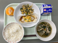 【献立】<立春のこんだて>牛乳 ご飯 鰆の菜種焼き のり和え 沢煮椀 はるみ