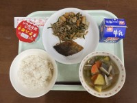今日のこんだて:牛乳・ご飯・ほっけのカレー焼き・茎わかめのきんぴら・さつま芋のみ...