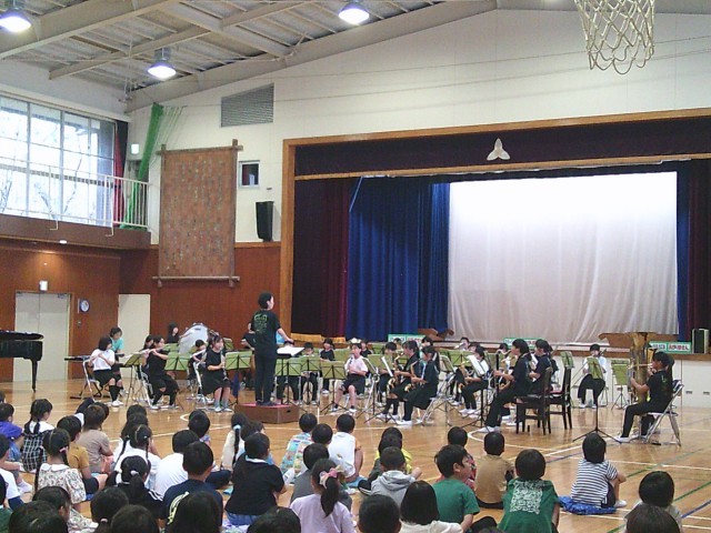 今日は、全校児童を前に、練習してきた成果を発表しました。当日は、新木小学校の代表として頑張ってきてください。