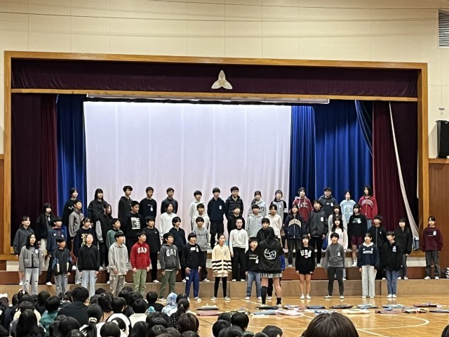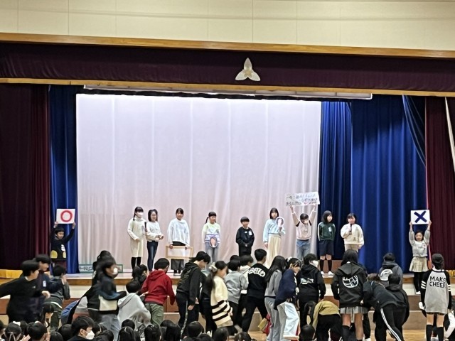本日「卒業を祝う会」を開きました。6年生の保護者の方々や、学校運営協議会委員の皆様にもご参観いただき、温かい雰囲気に包まれた会になりました。6年生への「感謝」の気持ちを表すために、劇やクイズ、合唱、映画等、工夫を凝らした発表がたくさんありました。