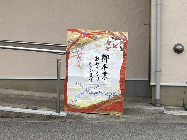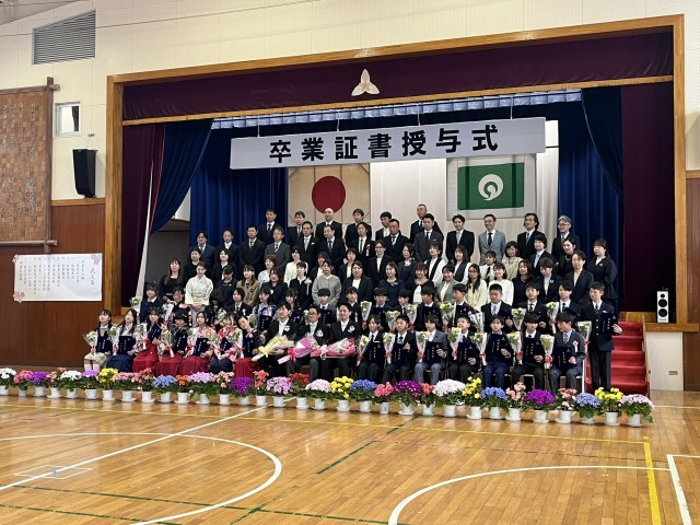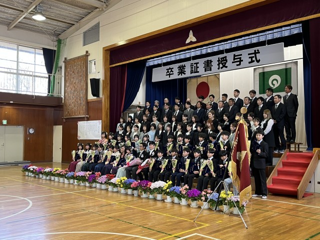 返事や呼びかけ、歌唱等、最高学年としての立派な姿を目の当たりにし、とても感動的な式となりました。保護者の皆様、本日はまことに、おめでとうございます。また、地域の方から素敵な祝電パネルを作っていただきました。ありがとうございました。