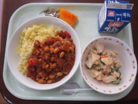 今日のこんだて:牛乳・煮干し・コスタリカライス・みそポテトサラダ・柿今日は10月...
