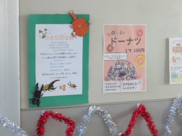 校舎内ではドーナツやポップコーン、検品の販売コーナーなどのお店が開かれ、体育館や校庭ではいろいろなゲームコーナーや昆虫販売などが行われました。