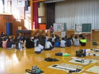 この会は、1年生の時に「昔あそび」を教えていただいたお礼に開催したもので、地域から15名の高齢者の方が来てくださいました。
