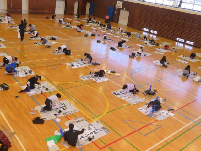 校内書き初め会(4~6年生) 公開日 2026/01/13 更新日 2026/01/13 学校のようす 校内書き初め会、4~6年生の様子です。【 4年生 「初もうで」 】 【 5年生 「美しい空」 】 【 6年生 「新春の朝」 】